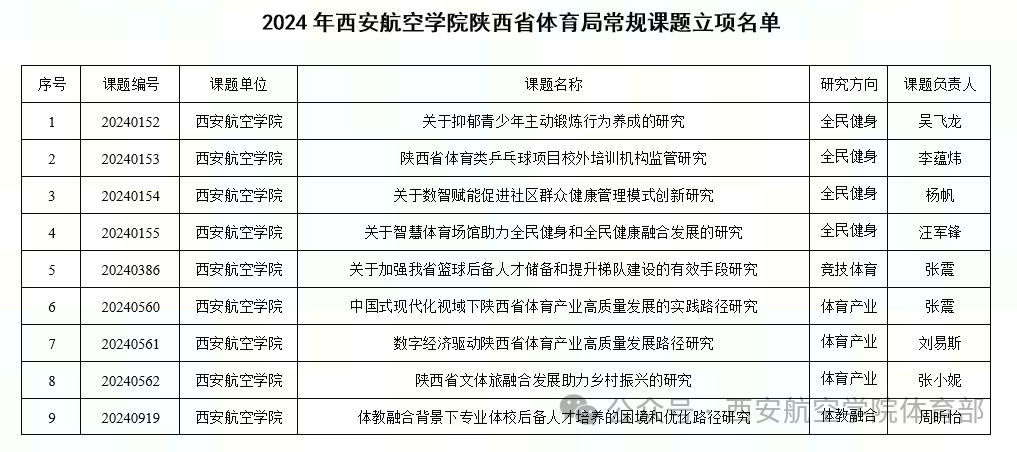 近日,陕西省体育局发布了《关于2024年常规课题立项的通知》,伟德国际victor·1946源自共计9项课题成功获批,立项数量创历史新高。