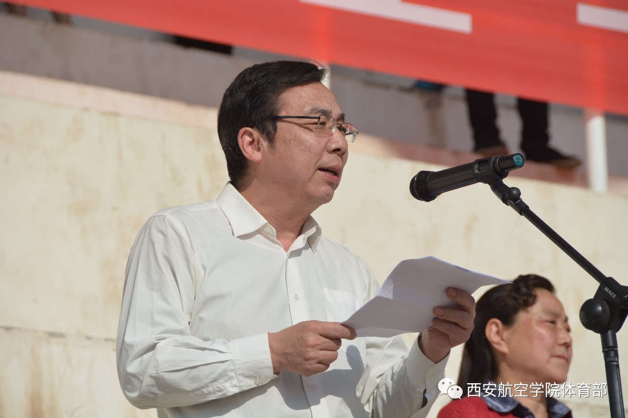 党委书记陈平社在开幕式致辞中表示,学校体育是实施素质教育、促进学生全面发展的重要途径,对于推进教育现代化、建设教育强国和健康中国具有重要意义。我校也一直大力发展体育事业,让当代大学生有健康的身体饱满的状态迎接学习和生活。今年是新中国成立70周年,也是“五四运动”100周年。本届田径运动会以“强健体魄、德智体美劳全面发展,追赶超越、迎评促建力争创一流”为主题,是激发全校师生“弘扬爱国奋斗精神,建功立业新时代”动力活力的重要载体,是推进学校“迎评促建”工作任务的重要内容,是展现“航空报国、立德树人、激情进取、志在超越”精神的重要窗口。希望把本届运动会办成文明精彩、和谐安全的盛会,办成推进学校体育工作再上新台阶、促进学生全面成长成才的盛会,以优异成绩向伟大祖国70华诞献礼。