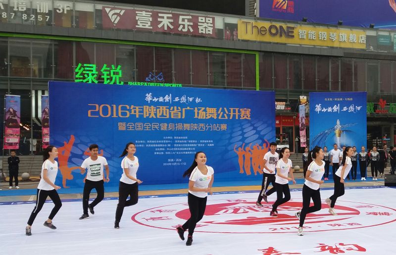 10月16日,2016年陕西省广场舞公开赛暨全国全民健身操舞陕西分站赛在陕西省体育场东广场举行。此次赛事由陕西省体育局主办,陕西省社会体育管理中心、朱雀广场管理委员会和陕西省体育场共同承办,陕西省健身操舞协会(筹)和陕西省全民健身操舞推广委员会协办。大赛设有健身操舞和广场舞两个项目,健身操舞分为时尚健身课程、有氧健身操舞、街舞、民族健身操舞,广场舞分规定动作和自选动作。