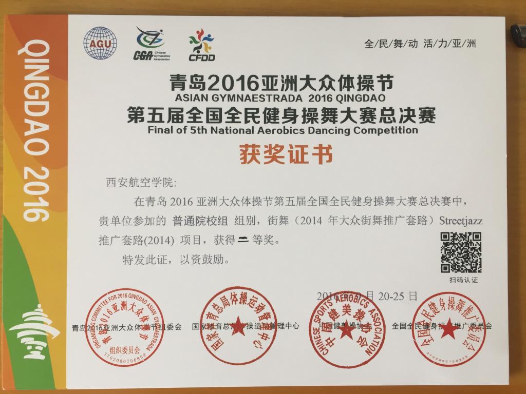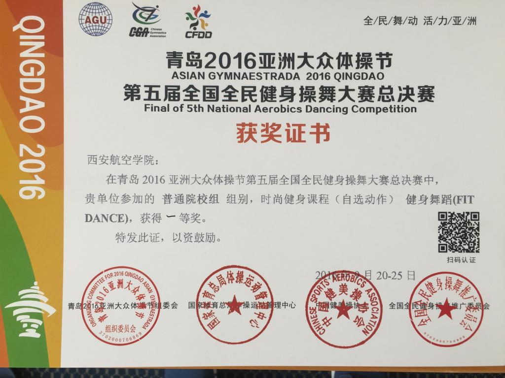 碧海蓝天,青瓦红砖,在这个金秋的季节“青岛2016亚洲大众体操节暨第五届全国全民健身操舞大赛总决赛”在青岛隆重召开,参赛选手来自亚洲七个国家和国内三十多个省市地区的代表团的近万名健身操爱好者参加比赛,我院健美操队作为陕西代表团中的一员参加了此次大赛。
