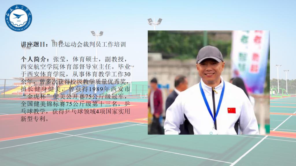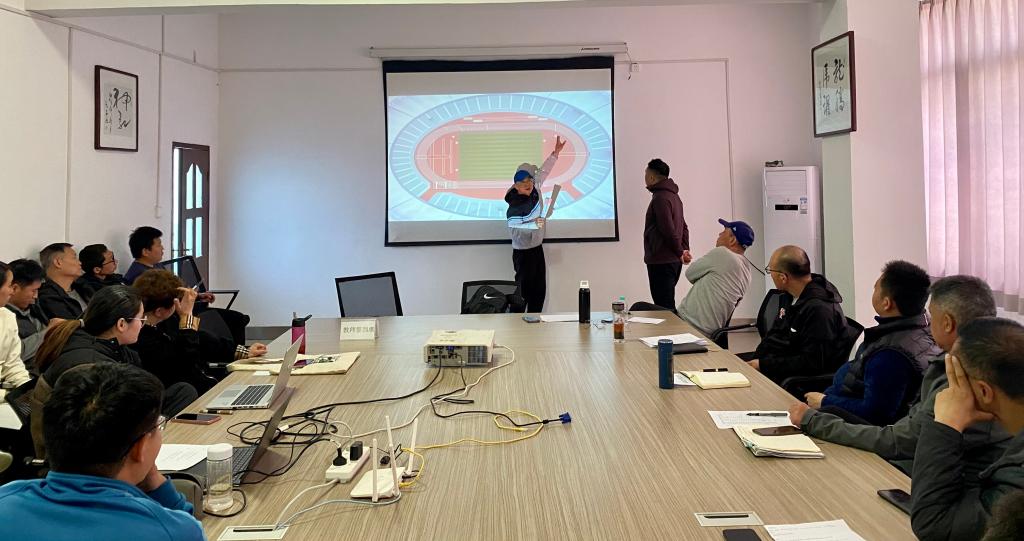 张莹围绕田径运动会各竞赛项目裁判员的岗位职责、裁判规则和注意事项进行了详细的讲解。随后,各教师与张莹老师就讲座相关内容进行了深入的讨论和交流。