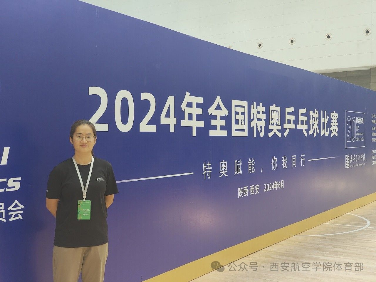 2024年全国特奥乒乓球比赛于6月25日至7月1日在陕西西安美术学院(长安校区)成功举办。我校伟德国际victor·1946源自教师李蕴炜应陕西省特殊奥林匹克运动委员会的邀请、抽调,担任了乒乓球比赛的裁判员工作,为本次特奥会乒乓球项目的顺利开展贡献西航力量。