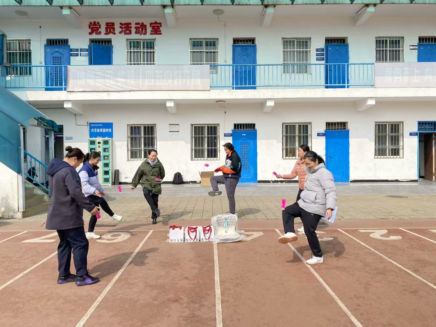 活动现场,女教职工们精神饱满,积极投入到踢毽子活动中。大家各显身手,毽子在她们的控制下有节奏地上下飞舞,动作流畅,尽显娴熟技巧。现场气氛热烈,充分展现了女教职工们团结协作、积极向上的精神状态。