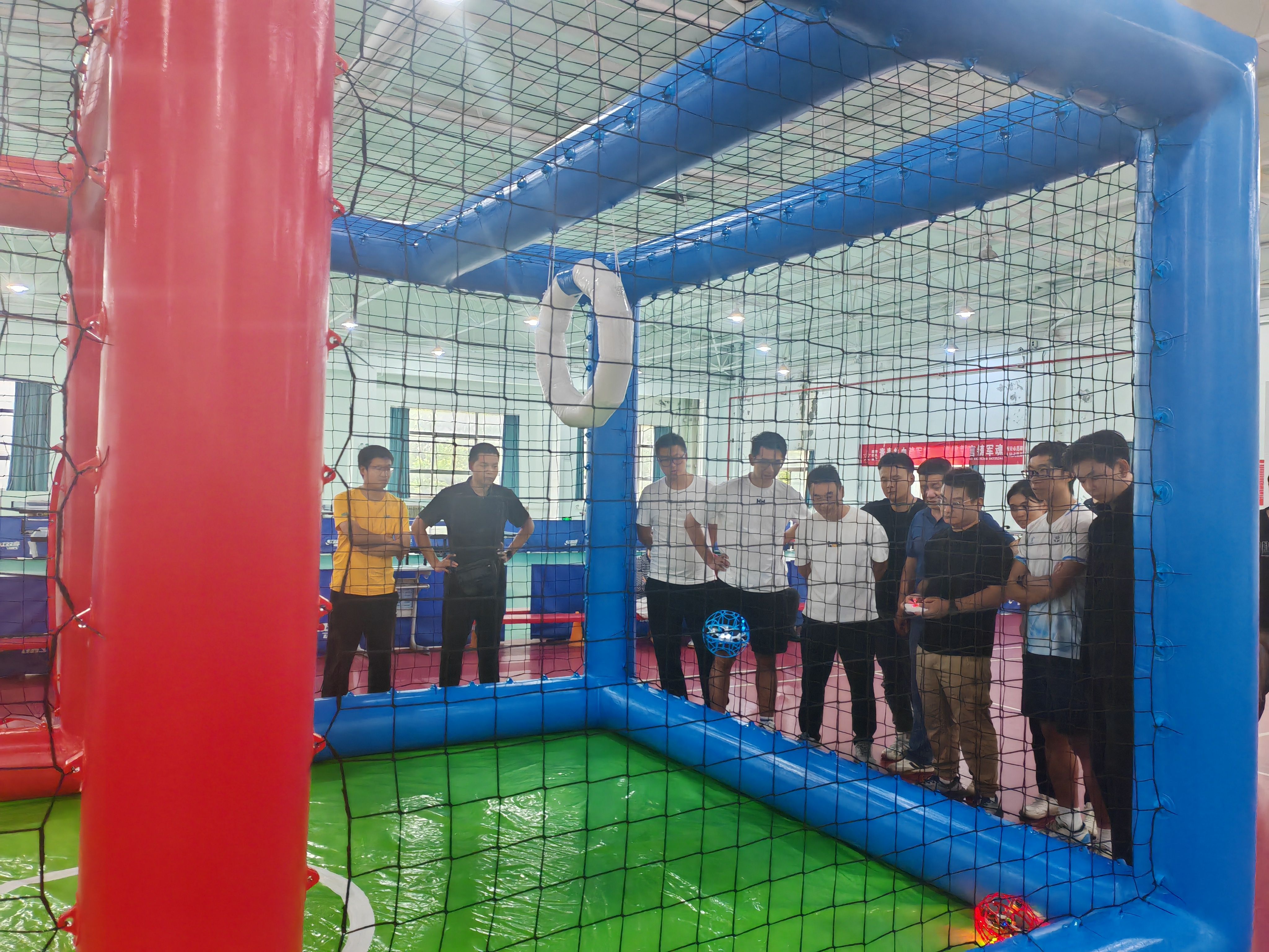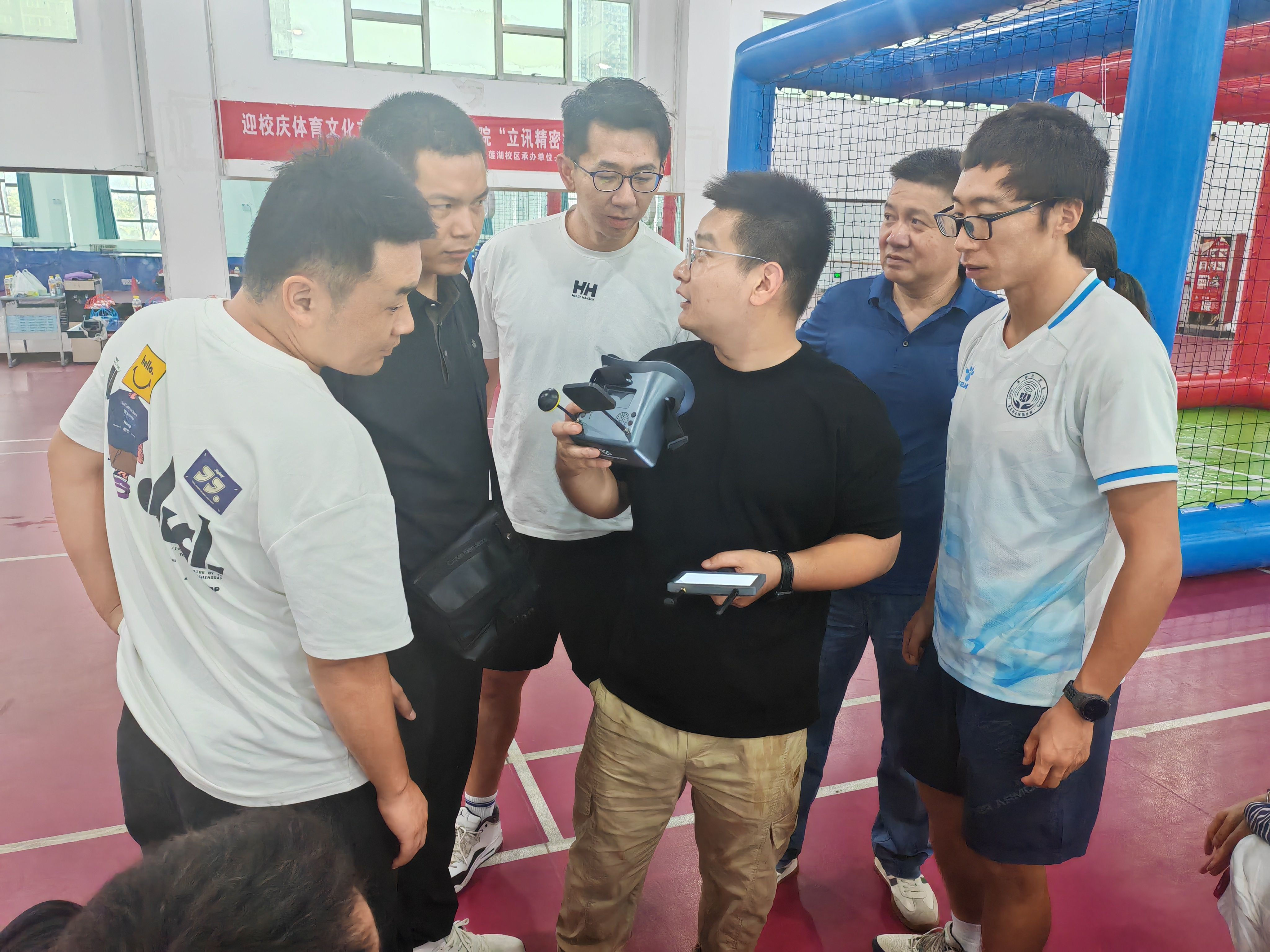 在理论讲解环节,张延昭从“无人机足球”与“无人机竞速”两个方面,对场地设置标准、参赛机型参数、赛道设计要素、攻防动作判定规则及安全对抗规范等内容,结合赛事案例进行了深入解读。在实操培训环节,张延昭结合现场展示的无人机,从无人机的启动调试、基础操控技巧到动作规范,指导大家操作练习,并逐一纠正,使教师们对无人机的基础操作方法与规则有了系统的了解。