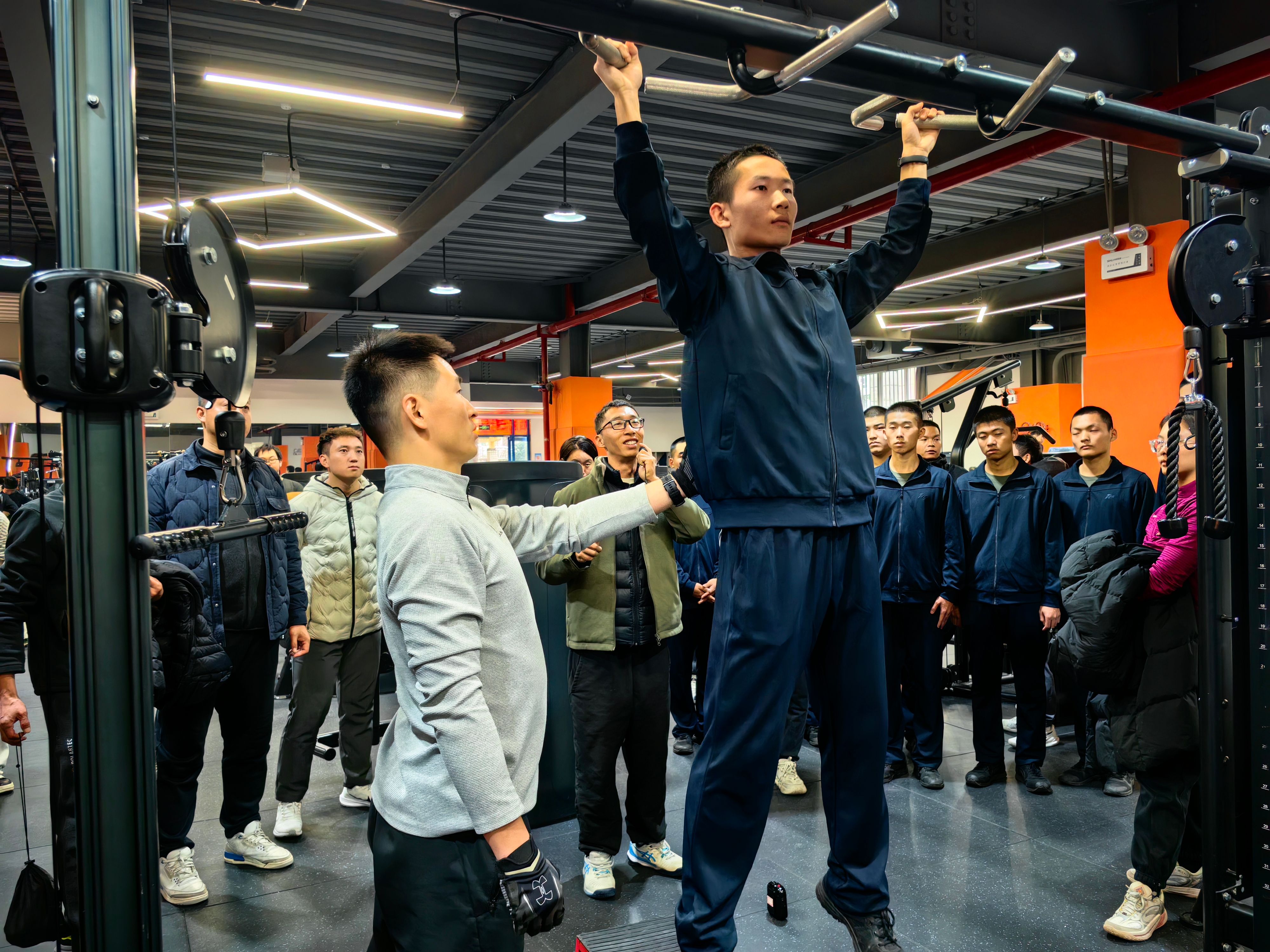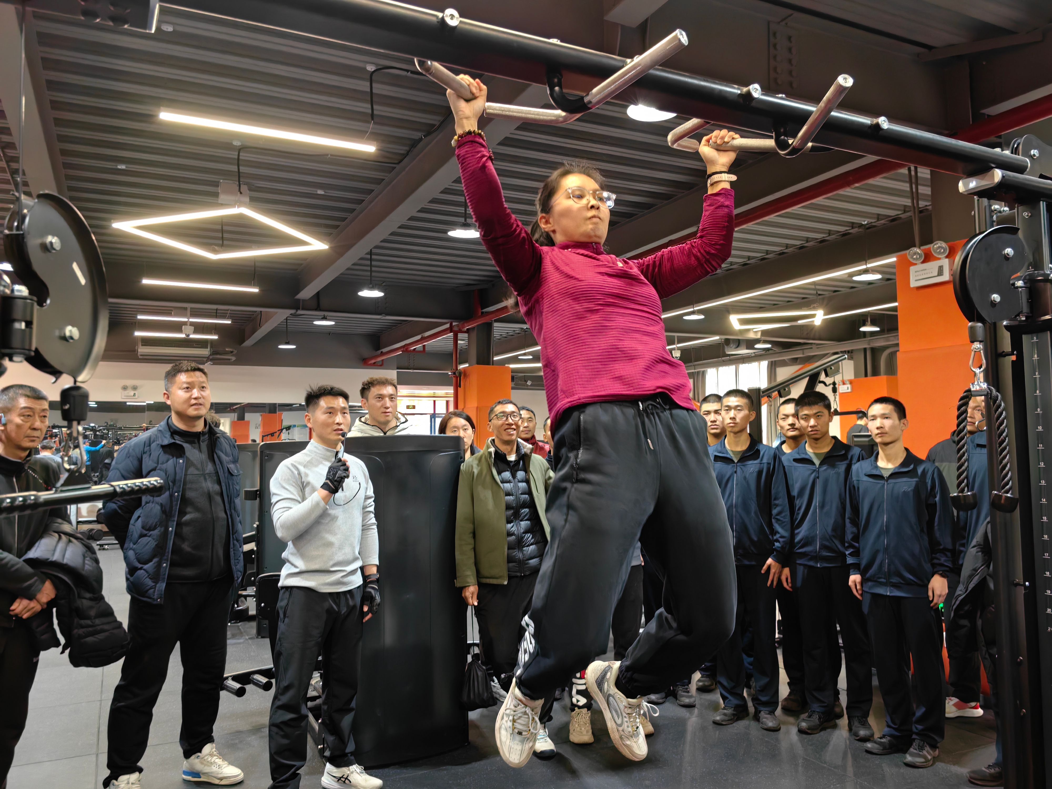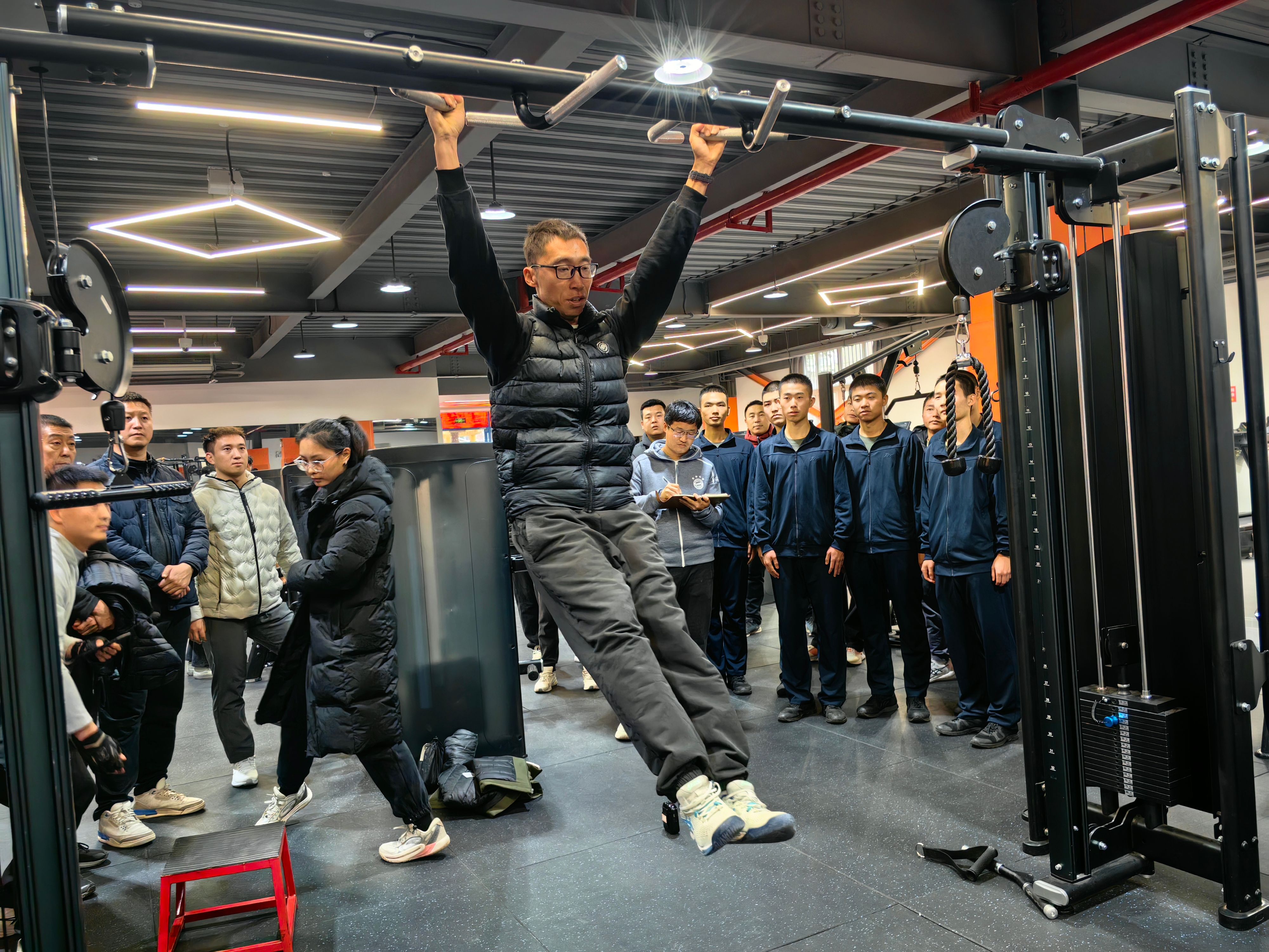 军事学院学生代表先后分享了在引体向上练习中如何实现从零到一、从不及格到及格、从及格到优秀的进阶历程,以及如何制定个人训练计划以突破瓶颈的经验。伟德国际victor·1946源自教师南腾、王馨玮、王力尧、徐新分别基于解剖原理、离心收缩、拮抗运动、抓握方法,以及握力训练——“农夫行走”、“吊杠”等练习项目,进行示范与教学经验分享。现场师生互动踊跃,气氛热烈,也为后续开展引体向上竞赛活动奠定了基础。