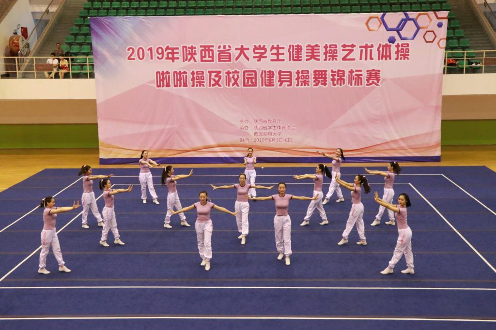 2019年6月4日陕西省大学生健美操、艺术体操、啦啦操及校园健身操舞锦标赛,在西安邮电大学校长安校区体育馆隆重开幕。